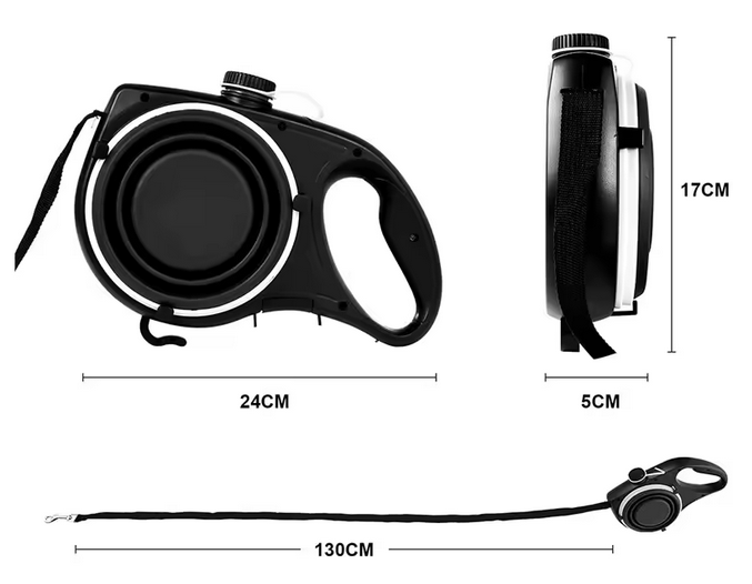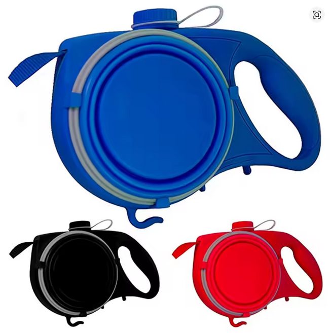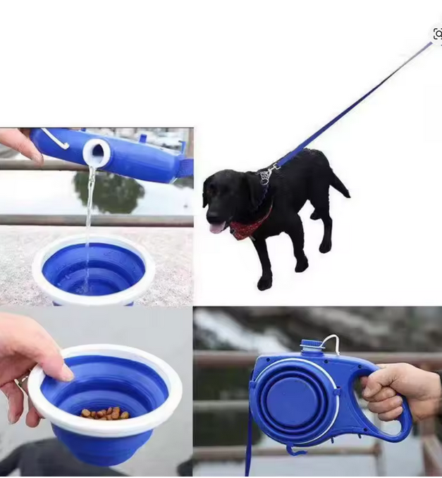 A multifunctional dog leash that combines a strong traction rope with a built-in water bottle, collapsible bowl, and waste bag dispenser. Perfect for outdoor walks and adventures, it keeps everything you need in one sleek, convenient design.