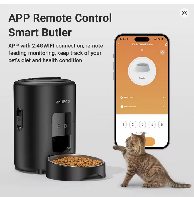 A 2L Wi-Fi-enabled automatic feeder for cats and dogs. Controlled via app, it dispenses kibble on schedule, making mealtime convenient, precise, and customizable from anywhere.