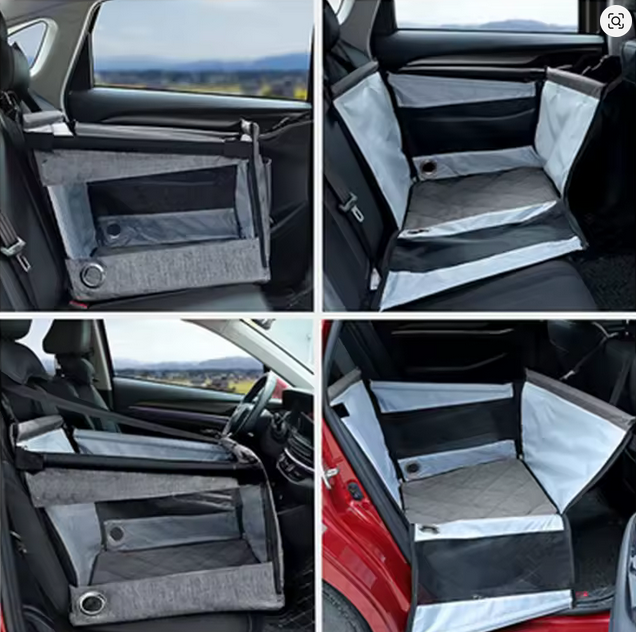 A secure and waterproof pet carrier seat with breathable mesh sides, keeping your puppy safe, comfortable, and protected during every car ride or outdoor trip.